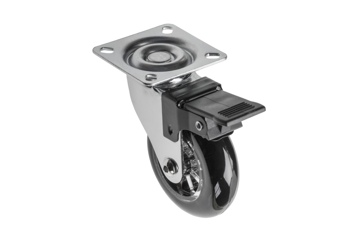ROLL BRAZIL 75 s brzdou z ocele, polykarbonátu (PC) a polyuretánu (PU). K dispozícii v dvoch farebných variantoch s priemerom 75 mm. Brazílske kotúče sú praktickým riešením pre byty a kancelárie, kde je mobilný nábytok, ako sú skrinky a stoly RTV, skrinky pod stolom so zásuvkami. Budú sa tiež používať v posuvných doskách, priemyselných policiach, stoloch, pufoch. Valčeky zabraňujú poškriabaniu podlahy, nepoškodzujú zem, tlmia vibrácie a tiež umožňujú rýchly pohyb nábytku. Kolesá vydržia zaťaženie až 64 kg. Otočná rukoväť valca umožňuje pohyb v mnohých smeroch, umožňuje plynulé otáčanie o 360 stupňov pri zaťažení.
