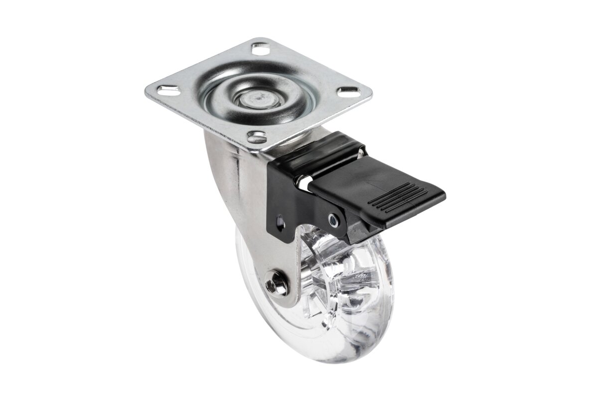 ROLL BRAZIL 75 s brzdou z ocele, polykarbonátu (PC) a polyuretánu (PU). K dispozícii v dvoch farebných variantoch s priemerom 75 mm. Brazílske kotúče sú praktickým riešením pre byty a kancelárie, kde je mobilný nábytok, ako sú skrinky a stoly RTV, skrinky pod stolom so zásuvkami. Budú sa tiež používať v posuvných doskách, priemyselných policiach, stoloch, pufoch. Valčeky zabraňujú poškriabaniu podlahy, nepoškodzujú zem, tlmia vibrácie a tiež umožňujú rýchly pohyb nábytku. Kolesá vydržia zaťaženie až 64 kg. Otočná rukoväť valca umožňuje pohyb v mnohých smeroch, umožňuje plynulé otáčanie o 360 stupňov pri zaťažení.