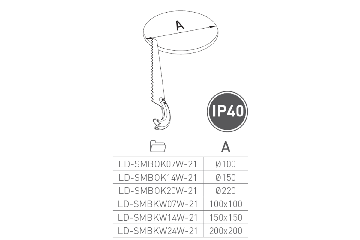 - Trieda ochrany IP40 venuje výrobok na použitie na miestach so zvýšeným prachom a normálnou vlhkosťou;