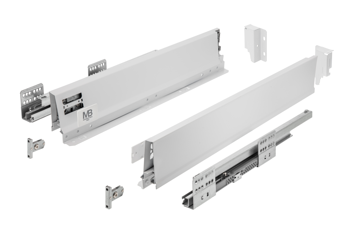 Modern Box Pro je ergonomické a moderné riešenie pre akýkoľvek typ kuchyne. Bude to fungovať skvele ako v malých miestnostiach, kde sa počíta každý voľný meter, tak aj vo veľkých priestoroch, ktoré poskytujú väčšie možnosti usporiadania. Modern Box Pro je reakciou na rastúce potreby zákazníkov, pokiaľ ide o kvalitu kuchynských doplnkov a pohodlie pri ich používaní. Systém splní očakávania aj tých najnáročnejších užívateľov. Moderná zásuvka Modern Box Pro je certifikovaná pre 60 000 cyklov. Výrobok poskytuje zaťaženie až 40 kg. Komfort práce je zaručený úplným predĺžením dĺžok od 300 do 550 mm, tichým zatváracím mechanizmom a synchronizáciou vodiacej dráhy. Zásuvka je k dispozícii v 4 výškových variantoch (84, 135, 167, 199 mm), a to ako pre zadlabacie, tak aj pre prekrývajúce sa čelá. Zásuvka sa ľahko montuje vďaka nastaveniu zvnútra, ako aj rozsahu vertikálneho a horizontálneho nastavenia v rozsahu +- 1,5 mm. Zásuvka sa hodí pre celý rad systémov organizácie priestoru, príborových vložiek, rohoží a triedičov odpadu.