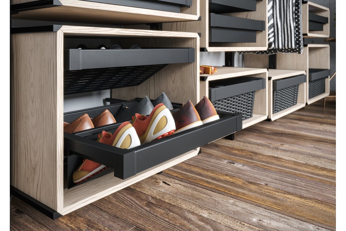 Kovová zásuvka Elite na topánky 700 mm s mäkkým zatváraním, sivý antracit