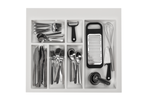 Zásuvkové vložky Axispace vyrobené z vysoko kvalitného plastu vám umožňujú efektívne spravovať interiéry kuchynských zásuviek. Vďaka špeciálnym váham máme možnosť správne oddeliť a usporiadať lyžice, nože, vidličky a ďalšie užitočné kuchynské doplnky. Vizuálny efekt však nie je jedinou výhodou tohto produktu. Zásuvkové vložky sú veľmi priestranné a praktické a umožňujú vám mať všetko na dosah ruky, čo je mimoriadne dôležité pre každého človeka zapojeného do varenia. V ponuke sú spojivá rôznych veľkostí (340-840 mm).
