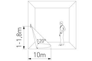 - Дальність і кут виявлення: Датчик руху CR-20 виявляє рух в діапазоні до 10 метрів, а кут виявлення становить 120 градусів, забезпечуючи ефективне покриття контрольованої області.