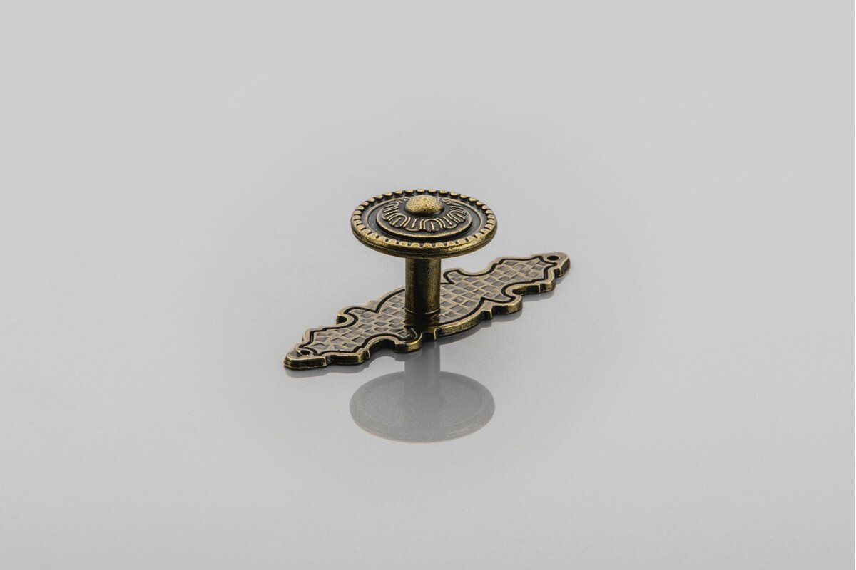 Ручка GZ - 1136 характеризується багатим орнаментом. Його основа має декоративні елементи, що імітують форму листя. Верхня частина ручки також прикрашена різьбленими фрагментами. Виконаний у кольорі антикварної латуні, вона стане ідеальним доповненням до інтер’єрів у стилі ретро, надаючи меблям ефект «під старовину». Підходить для дерев'яних кухонних фасадів.